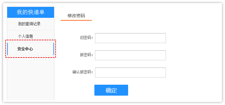 2、用戶(hù)中心點(diǎn)擊【安全中心】,進(jìn)入密碼修改頁(yè)面,輸入原密碼以及新密碼,點(diǎn)擊確認(rèn)按鈕即可。