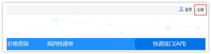 第1步:打開快遞網(wǎng),點(diǎn)擊頁面右上角的"注冊(cè)"。