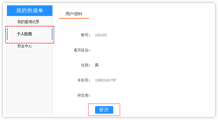 2、用戶中心點擊【個人信息】,進(jìn)入個人信息頁面,點擊【修改】,即可對個人信息進(jìn)行修改。