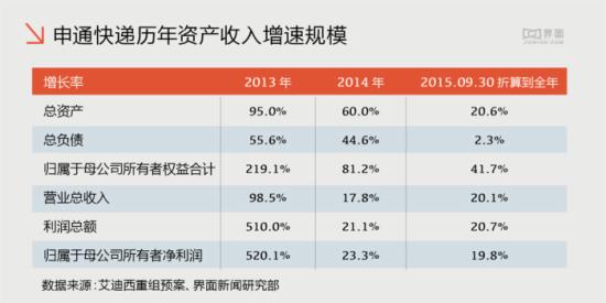 除了此前說到的快遞行業(yè)增速下滑,從“三通”中申通速遞的收入、利潤增速規(guī)模中也可以驗(yàn)證這一事實(shí)。從艾迪西披露的重大資產(chǎn)重組預(yù)案中可以看到,申通的收入以及利潤規(guī)模增速大幅放緩,特別是利潤規(guī)模的增速自2014年以來快速下滑。除去利潤的大幅萎縮,加盟的風(fēng)險也日益嚴(yán)重。分公司拖欠工資造成快遞堆積如山的新聞報道層出不窮。