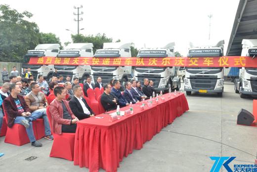 10月30日上午,天天快遞四車隊沃爾沃交車儀式在天天快遞杭州集散舉行,天天快遞總部運(yùn)管部調(diào)度中心相關(guān)負(fù)責(zé)人、杭州集散中心經(jīng)理鄭建宏,天天快遞四車隊鑫淼物流總經(jīng)理李德平,沃爾沃中國華東區(qū)總經(jīng)理沈力強(qiáng),寧波甬沃汽車有限公司總經(jīng)理姚程宏,浙江萬盾資產(chǎn)管理有限公司總經(jīng)理助理徐婧,山東駿通專用車有限公司總經(jīng)理張建強(qiáng),浙江宗海物聯(lián)網(wǎng)發(fā)展有限公司總經(jīng)理張文進(jìn),浙江高速交警總隊徐洋,下沙派出所所長周春華參加本次儀式。