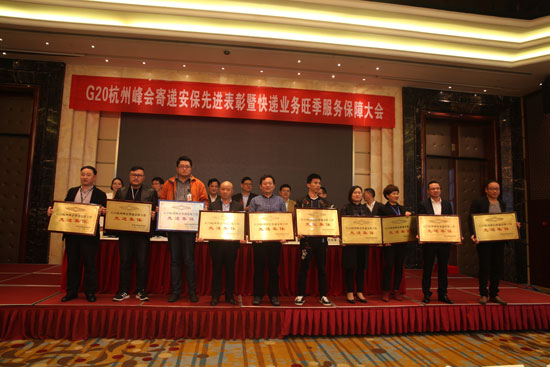 2016年10月31日下午14時(shí),“G20杭州峰會(huì)寄遞安保先進(jìn)表彰暨2016快遞旺季服務(wù)保障工作會(huì)議”在杭州天元大廈召開,杭州市綜治、公安、國(guó)安、郵政管理局等相關(guān)部門出席會(huì)議并講話,圓通速遞等快遞企業(yè)相關(guān)負(fù)責(zé)人及代表參加了會(huì)議。會(huì)議布置了2016年杭州市快遞旺季服務(wù)保障工作并隆重表彰了G20杭州峰會(huì)寄遞安保先進(jìn)集體和先進(jìn)個(gè)人,圓通速遞浙江省區(qū)、下屬3家加盟公司及17名員工分別受到表彰。